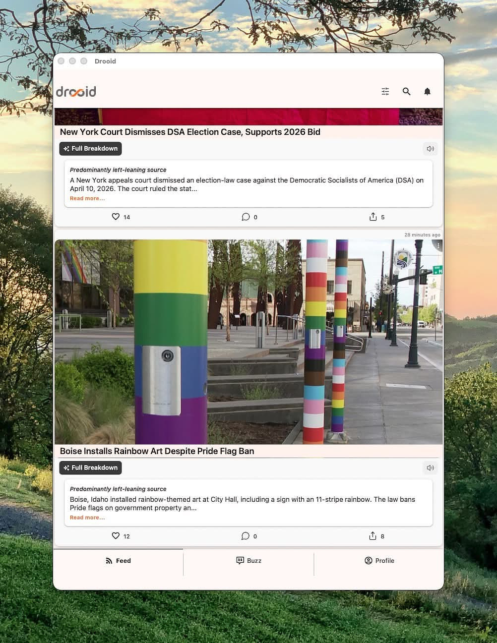 Instead of relying on a social media algorithm to decide what you see, Drooid gives you a structured way to compare coverage directly.